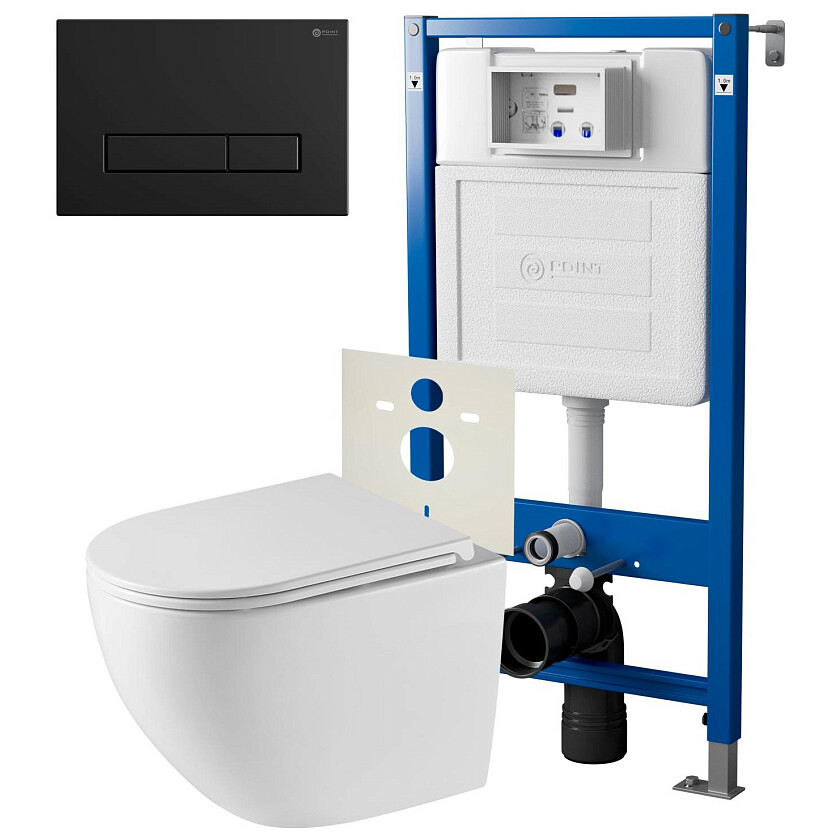 3. Унитаз подвесной Point Сатурн безободковый, белый, сиденье дюропласт микролифт быстросъемное PN41901