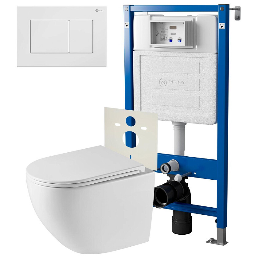 3. Унитаз подвесной Point Сатурн безободковый, белый, сиденье дюропласт микролифт быстросъемное PN41901