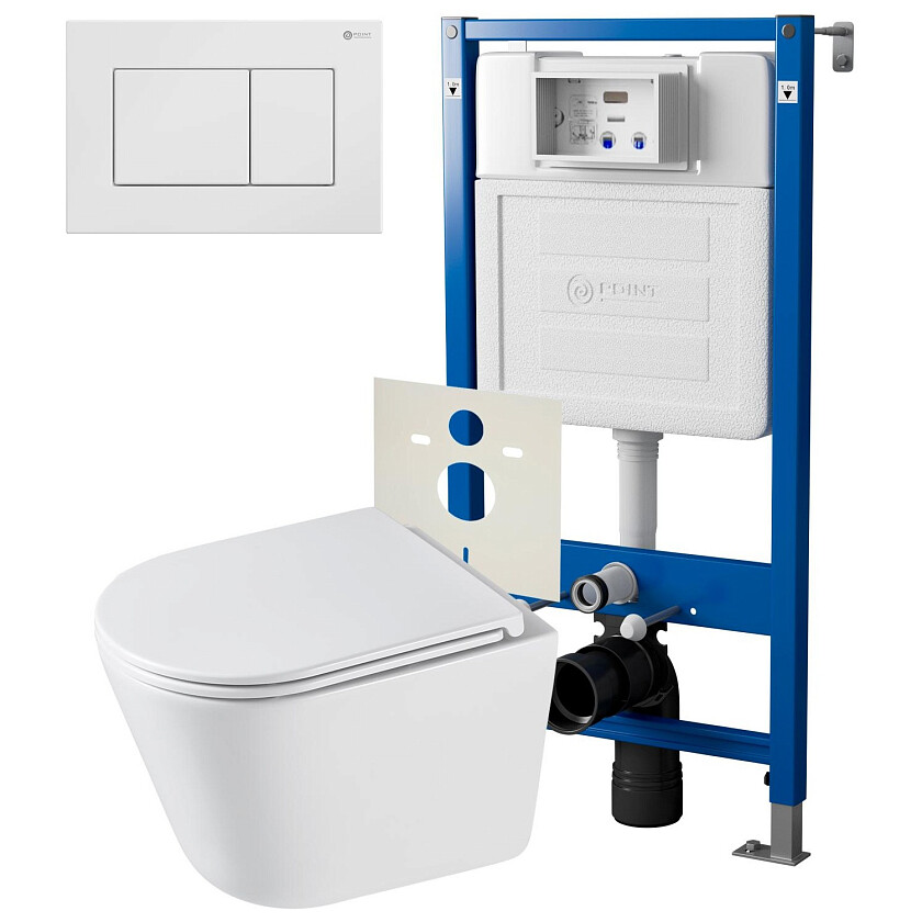 3. Унитаз подвесной Point Венера безободковый, белый, сиденье дюропласт микролифт быстросъемное PN41071
