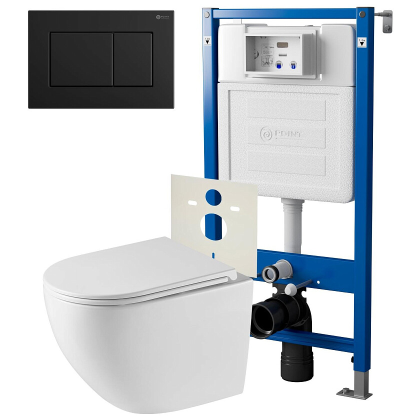 3. Унитаз подвесной Point Сатурн безободковый, белый, сиденье дюропласт микролифт быстросъемное PN41901
