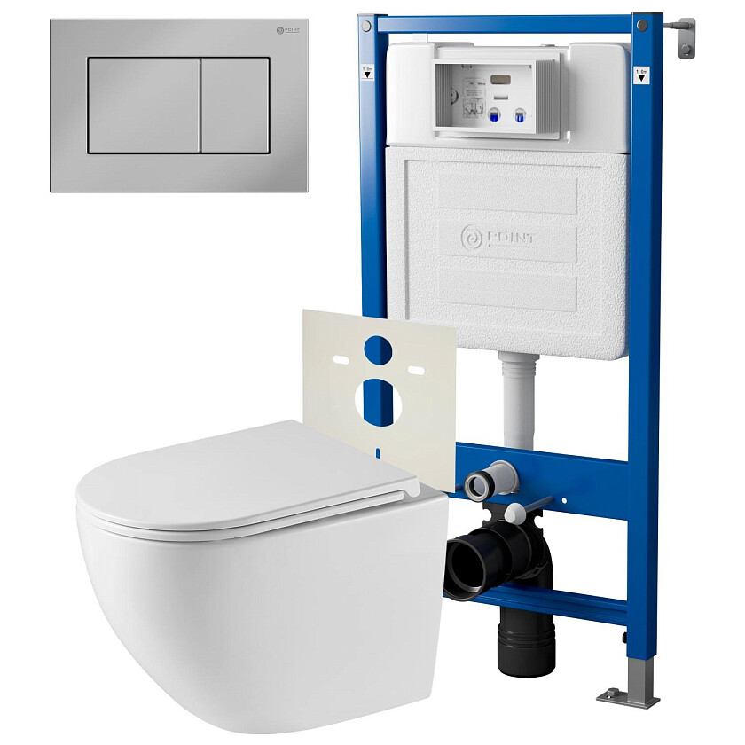 3. Унитаз подвесной Point Сатурн безободковый, белый, сиденье дюропласт микролифт быстросъемное PN41901