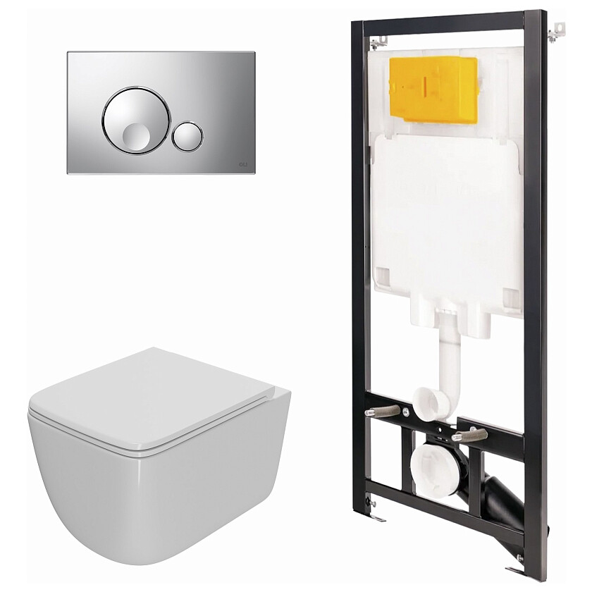 Комплектация: Унитаз, клавиша, инсталляция, сиденье, комплект креплений.