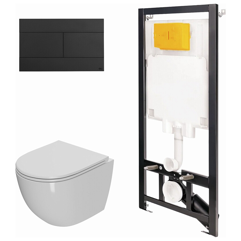 Комплектация: Унитаз, клавиша, инсталляция, сиденье, комплект креплений