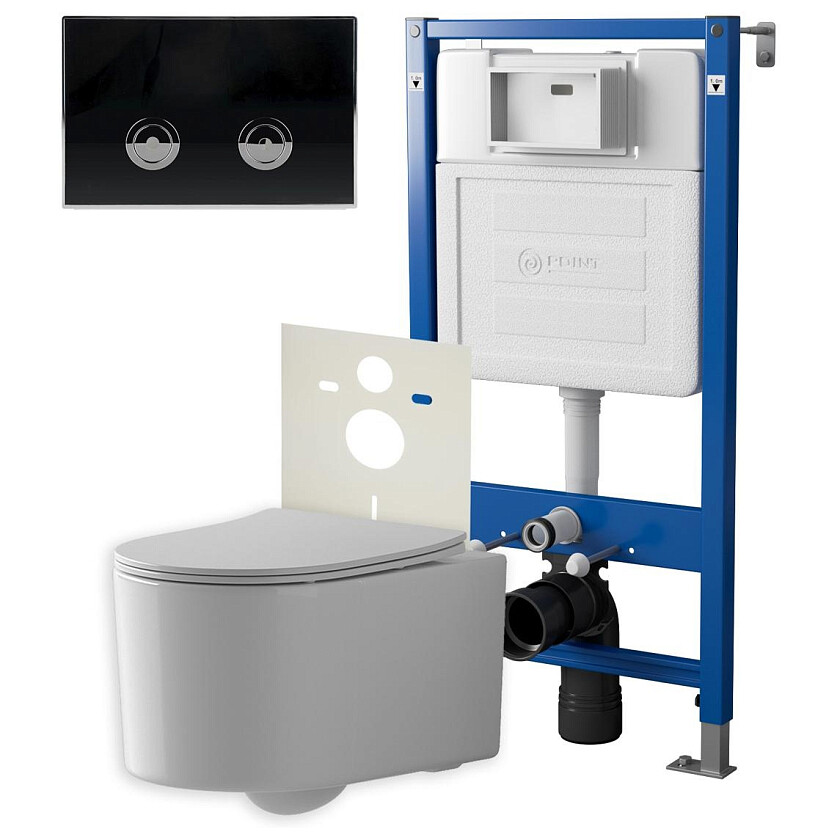 Унитаз белый Point "Веста" PN41701 с инсталляцией "Элемент П" PN45121 с кнопкой "Венера" PN44071BC