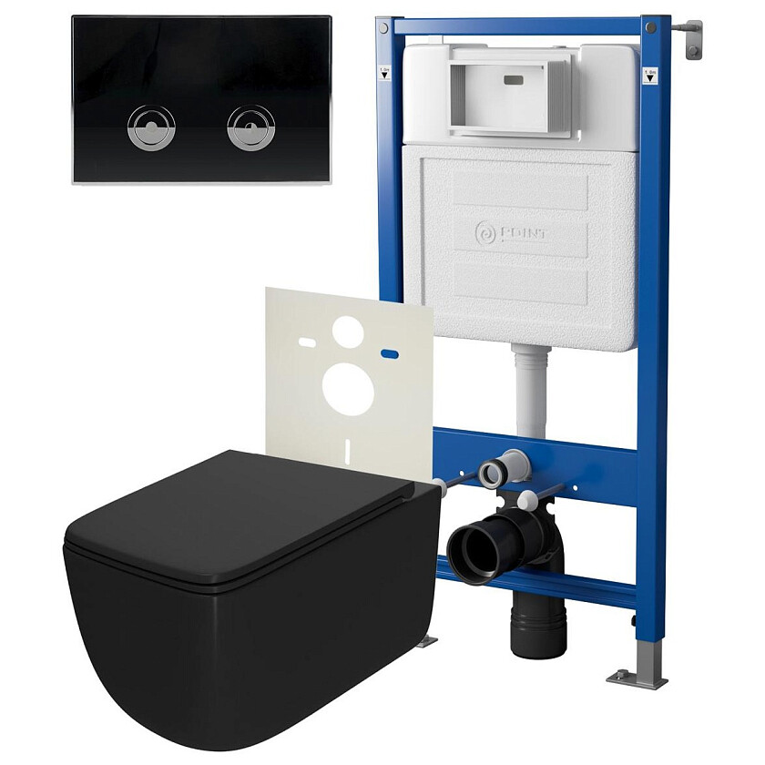 Унитаз Point "Меркурий" PN41831BM с инсталляцией "Элемент П" PN45121 с кнопкой "Венера" PN44071BC