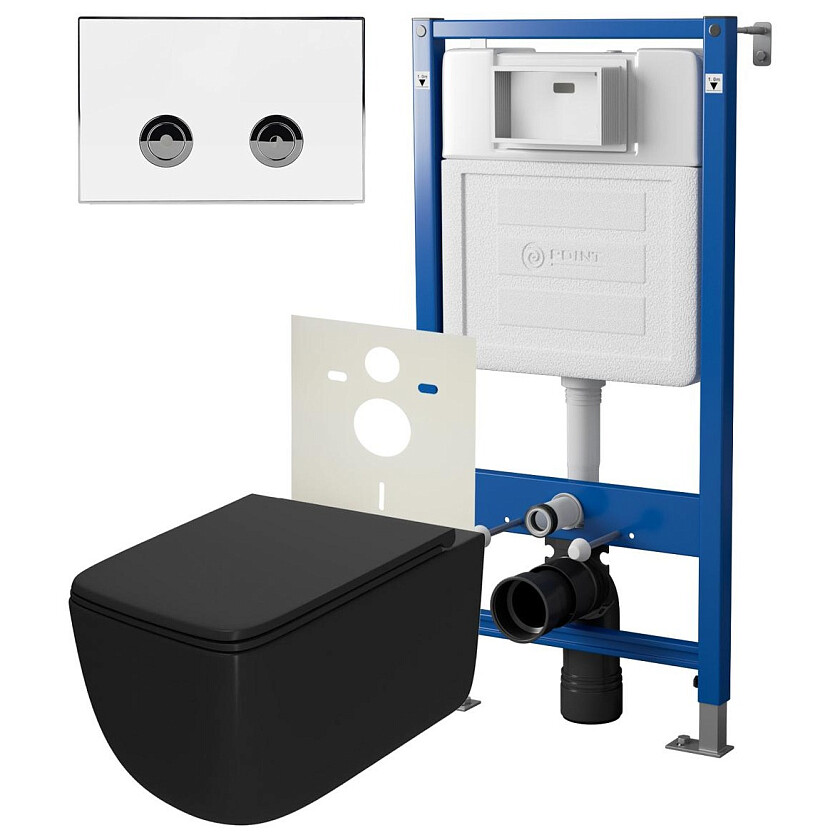 Унитаз Point "Меркурий" PN41831BM с инсталляцией "Элемент П" PN45121 с кнопкой "Венера" PN44071WC