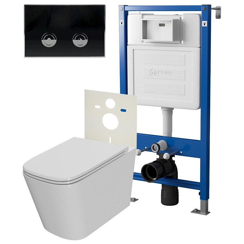 Унитаз подвесной имеет изящные прямоугольные формы. Изделие относится к числу ставших очень популярными в последнее время безободковых унитазов, которые легко чистить, так как нет "заповедных" мест, которые призваны сдерживать воду, но которые так тяжело чистить, хотя именно там и скапливается грязь. Унитаз в комплекте с инсталляцией Point Элемент П для подвесного унитаза PN45121 + Клавиша смыва для пневматической инсталляции Point Венера, черный/хром, PN44071BC