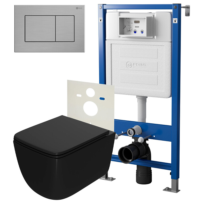 Унитаз в комплекте с инсталляцией Point Элемент для подвесного унитаза PN45120 + Клавиша смыва для инсталляции Point Ника, нержавеющая сталь, сталь брашированная, PN44081SB