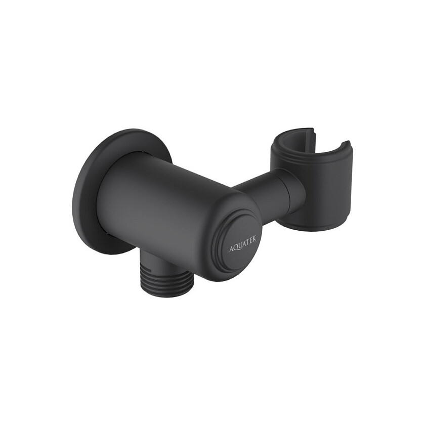 Шланговое подсоединение AQUATEK КЛАССИК, с держателем, матовый черный AQ2462MB. Предназначен для комплектации встраиваемых смесителей. Обеспечивает качественное соединение душевого шланга и трубопровода.