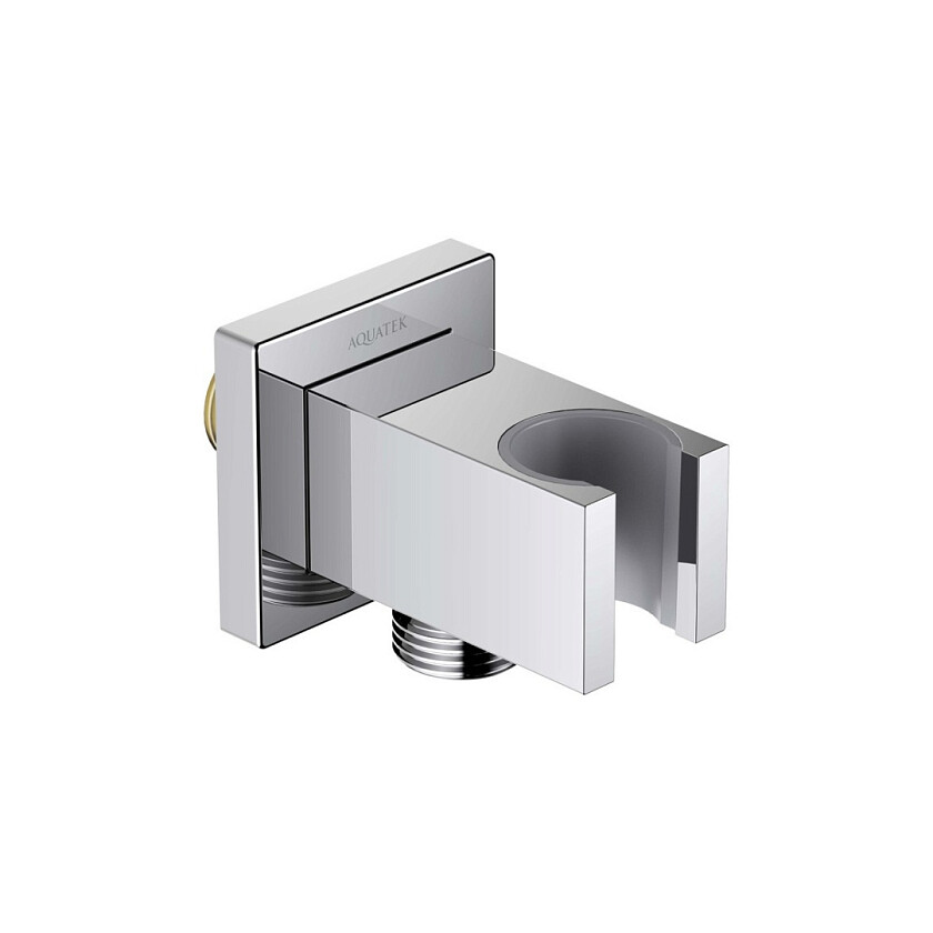 Шланговое подсоединение AQUATEK, с держателем, хром AQ2463CR. Предназначен для комплектации встраиваемых смесителей. Обеспечивает качественное соединение душевого шланга и трубопровода.