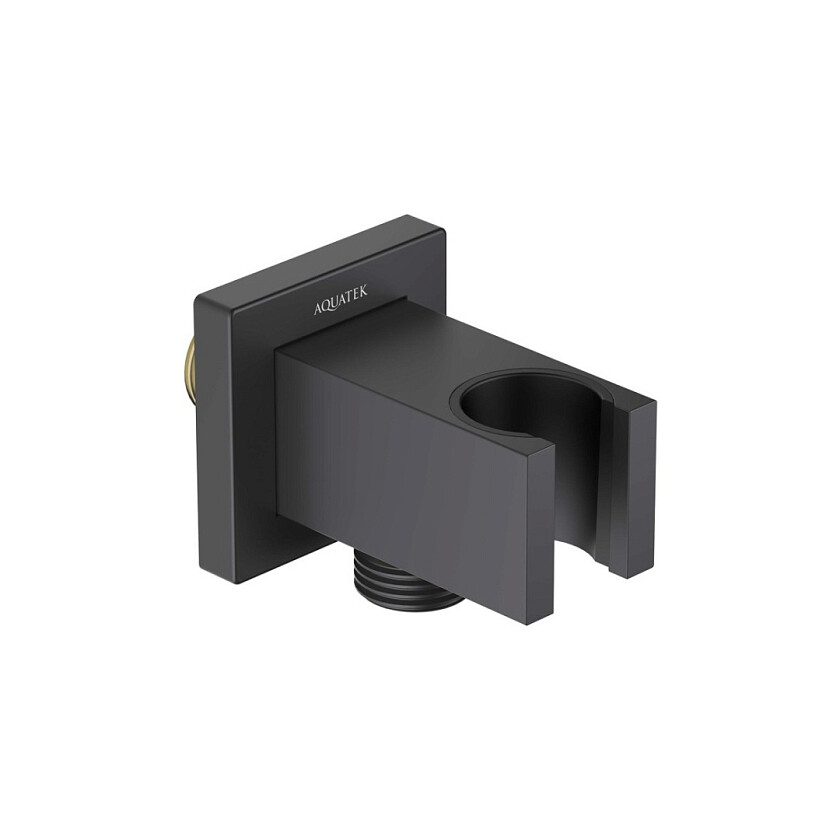 Шланговое подсоединение AQUATEK, с держателем, матовый черный AQ2463MB. Предназначен для комплектации встраиваемых смесителей. Обеспечивает качественное соединение душевого шланга и трубопровода.