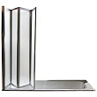 Складная шторка из 4-х частей удобно складывается над ванной. Вода, стекая со стекла, попадает в ванну, оставляя пол сухим.