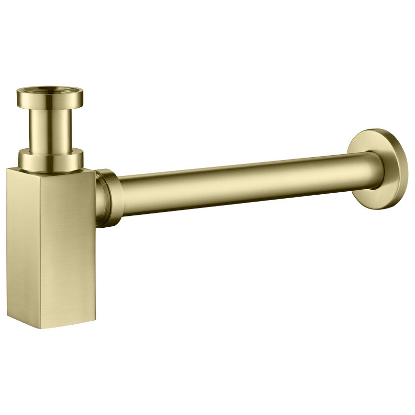 Сифон сделан полностью из латуни. Устройство из латуни имеет приятное матовое покрытие, что придает ему изысканный внешний вид. Такие изделия предпочтительно устанавливать в местах, где под раковиной не предполагается установка шкафчика.