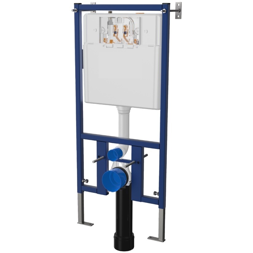 Рама инсталляции устойчиво монтируется в капитальную стену и пол, подвод воды — верхний.