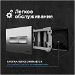 Кнопка DIWO 7321 с двумя прямоугольными клавишами выполнена в универсальном оттенке «матовый хром». Ее механизм способен работать на протяжении 50 лет (более 200 000 циклов использования). За кнопкой находится декоративная прозрачная панель, которая позволит заглянуть в ревизионное окно.