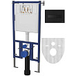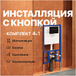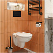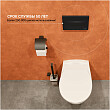 Оснащение — черная матовая кнопка с прямоугольными клавишами, качественная шумоизоляция, смывной бачок и крепления.