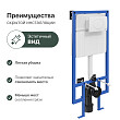 Дополнительной опорой в области прилегания унитаза к стене выступают вертикальные ребра жесткости. Их наличие делает инсталляцию универсальной — она подойдет даже для унитазов с минимальной контактной поверхностью. Соединительные детали выполнены из армированного пластика.