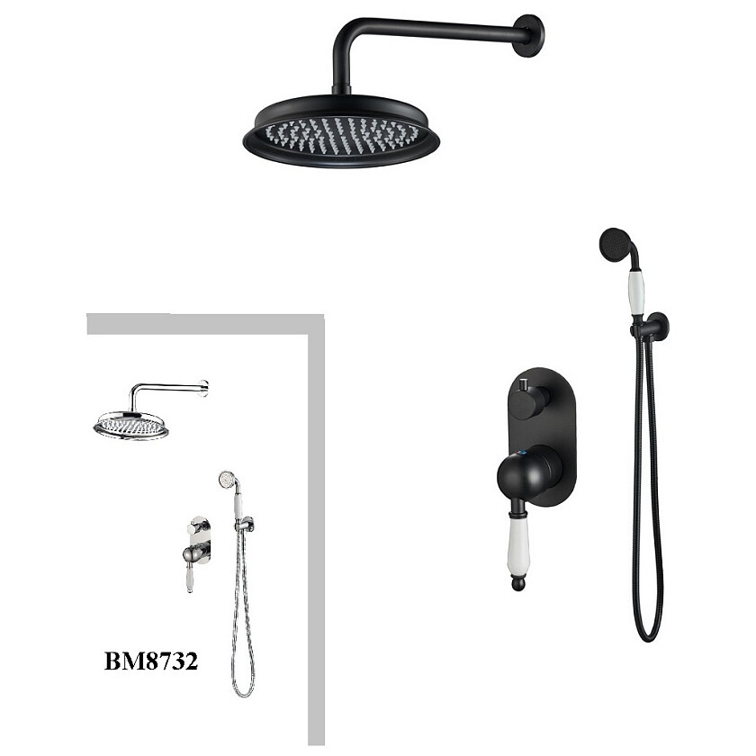Душевой комплект встраиваемый с верхним душем черный Boch Mann Marbella Top BM8731 - изображение 1