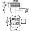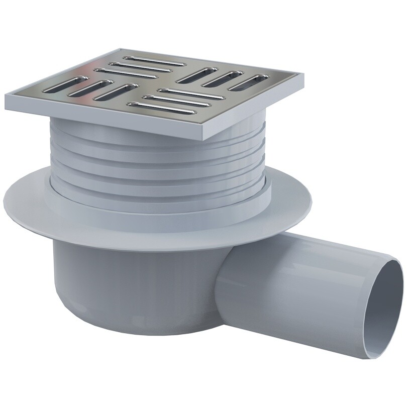 Комплектация: корпус сливного трапа с боковым подключением к стоку Ø50 мм, горловина сливного трапа 105×105 мм, решетка из нержавеющей стали, мокрый гидрозатвор, комплект прокладок.