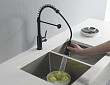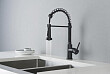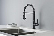 Смеситель для кухни AQUATEK ЕВРОПА, 2 jet (профессиональный), матовый черный AQ1387MB оснащен гибким поворотным пружинным изливом 160°, удобен для мытья крупных предметов.