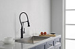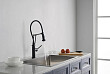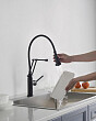 Смеситель для кухни AQUATEK ЕВРОПА, 2 jet (профессиональный), матовый черный AQ1388MB оснащен гибким поворотным вытяжным изливом из резины, с вращением 360°, удобен для мытья крупных предметов.