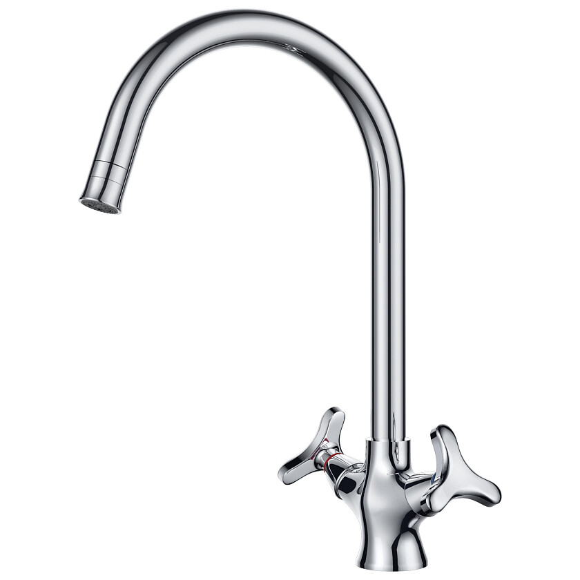 Смеситель высокий для кухни D&K Hessen Goethe DA1382441 - консерватизм, доработанный до совершенства. Притягивающий классический внешний вид для предпочитающих стабильность. Блестящий внешний вид двухручкового смесителя с обновленными ручками привлекает своим внешним видом и послужит прекрасным дополнением классической кухни.