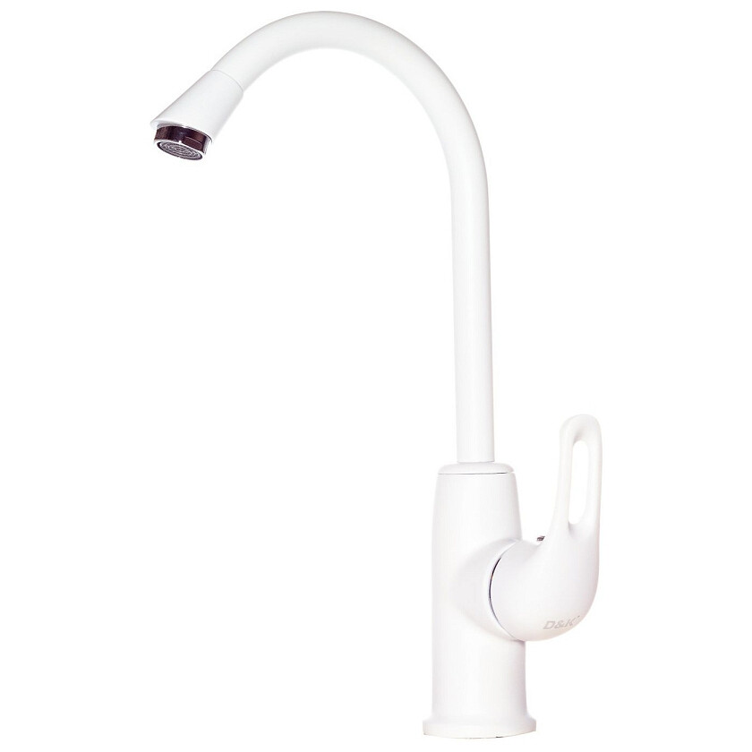 Смеситель высокий для кухни D&K Rhein Eucharius DA1372426. Rhein Eucharius - линейка смесителей специально разработанная для того, чтобы дополнить интерьер вашей уникальной кухни и предать ей еще больше индивидуальности. Мягкие черты в белом цвете подчеркивают индивидуальность каждой кухни. Продуманный дизайн с изящным изливом с удобной ручкой придется вам по душе и будет радовать долгие годы.