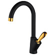 Смеситель высокий для кухни D&K Venice.Gondola DA1032459. Коллекция Venice Baciano - приятный легкий дизайн и шарм. Победитель престижной дизайнерской премии Red Dot Design Award. Правильная геометрия, идеальный пример минимализма и современного дизайна в ярком сочетании черного и золотого цветов для современной кухни.