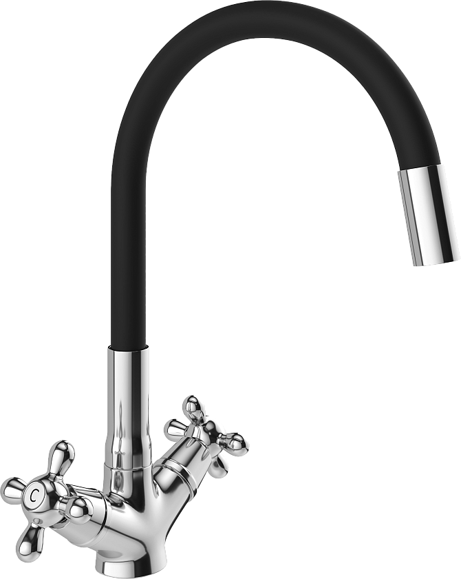 Смеситель для кухни с гибким изливом черный, хром Domaci "Равенна" D03-007cr - изображение 1