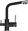 Смеситель для кухни Domaci Солерно DC-3003 в стильном цветовом решении «антрацит». Устройство из латуни имеет приятное матовое покрытие, что придает ему изысканный внешний вид. Подача питьевой воды осуществляется через дополнительный излив. Смеситель имеет совмещенный излив для фильтрованной воды. В комплекте крепления, аэратор, гибкая подводка.