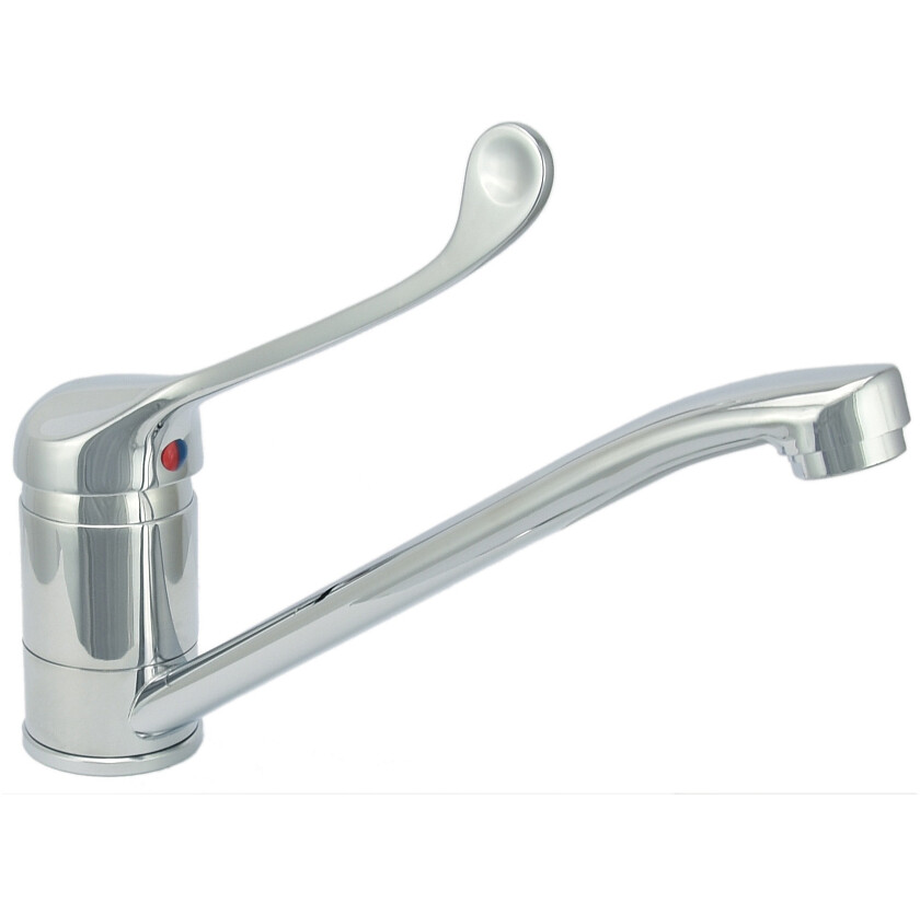 Смеситель для кухни Istok life 0402.975, с хирургической ручкой оптимален для установки на мойки различного размера и вида.