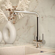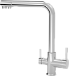Питьевая вода подается через дополнительный излив при помощи малого рычага. Это удобно, так как кран не занимает места и не требует отдельной установки.