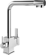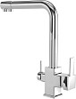 Изюминка модели — встроенный кран фильтра. Для подачи питьевой воды смеситель оснащен дополнительным изливом и отдельным рычагом управления.