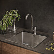 Однорычажный смеситель для кухни MEGA Snow MG-SH03 имеет удобную конструкцию — поворотный изогнутый излив и эргономичную рукоятку.