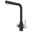 Один кран совмещает в себе две функции: подача воды для бытовых нужд + подача фильтрованной воды для питья. Два независимых друг от друга канала не только исключают возможность перекрестного смешивания воды, но и избавляют от необходимости устанавливать дополнительный кран для фильтра, что освобождает рабочее пространство и не перегружает общий вид кухни. Простая регулировка подачи обычной и питьевой воды осуществляется с помощью двух обособленных рычагов, установленных на одном корпусе (один рычаг — для бытовой воды, второй — для фильтрованной). Гибкая подводка идет в комплекте.