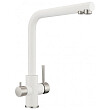 Один кран совмещает в себе две функции: подача воды для бытовых нужд + подача фильтрованной воды для питья. Два независимых друг от друга канала не только исключают возможность перекрестного смешивания воды, но и избавляют от необходимости устанавливать дополнительный кран для фильтра, что освобождает рабочее пространство и не перегружает общий вид кухни. Простая регулировка подачи обычной и питьевой воды осуществляется с помощью двух обособленных рычагов, установленных на одном корпусе (один рычаг — для бытовой воды, второй — для фильтрованной). Гибкая подводка идет в комплекте.