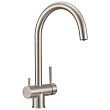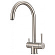 Модель выполнена в цвете серебристого металла (сатинированная нержавеющая сталь) и имеет изящный изогнутый кран, благодаря чему станет яркой, привлекающей внимание деталью на кухне и никого не оставит равнодушным.