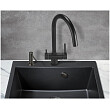 Модель выполнена в однородном чёрном цвете без вкраплений и деталей в других цветах и имеет изящный изогнутый кран, благодаря чему станет яркой, привлекающей внимание деталью на кухне и никого не оставит равнодушным.