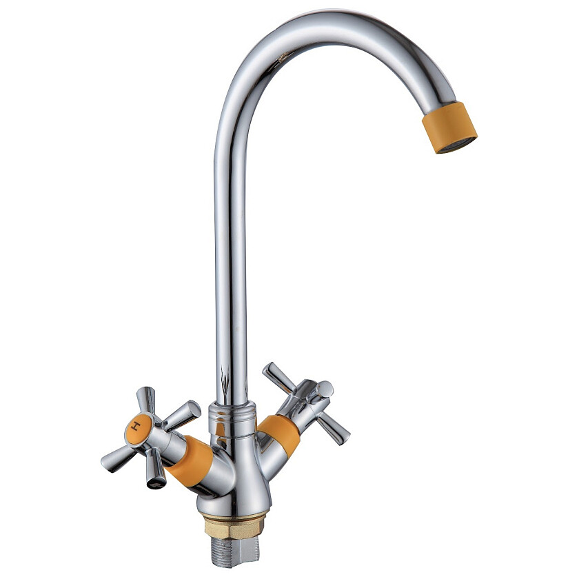 Смеситель для кухни двухвентильный желтый, хром Ammore A5482-7 - изображение 1