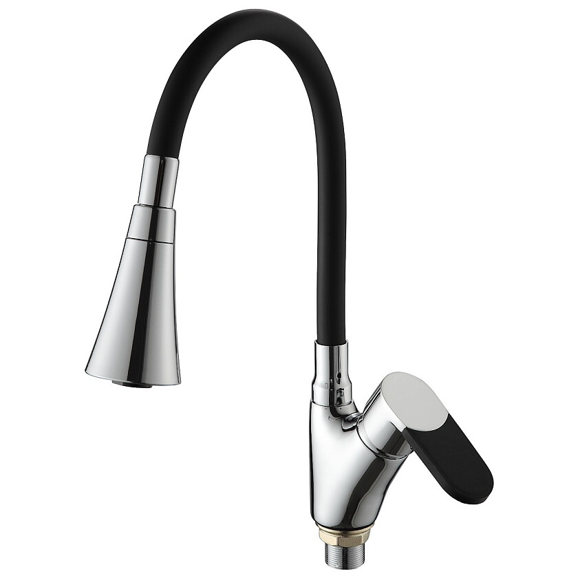 Смеситель для кухни однорычажный с силиконовым изливом черный, хром Ammore A5007-1T