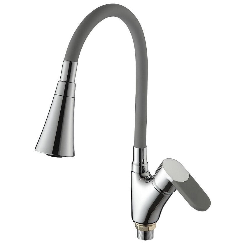 Смеситель для кухни однорычажный с силиконовым изливом серый, хром Ammore A5007-2T