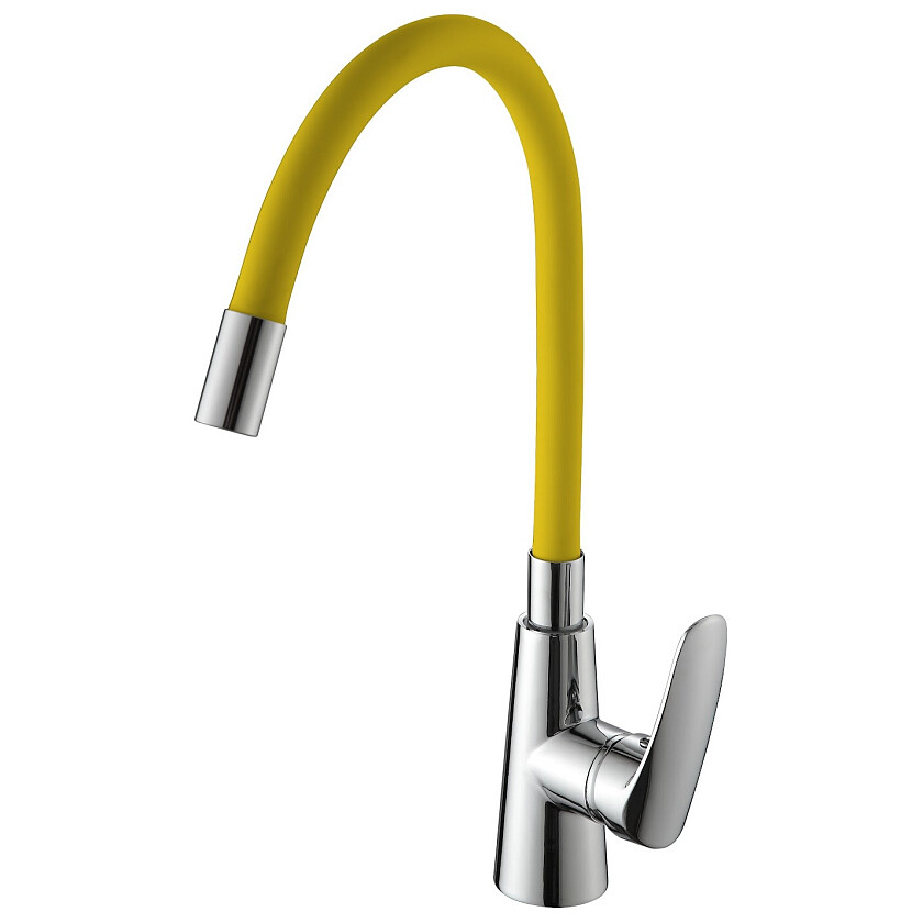 Смеситель для кухни однорычажный с силиконовым изливом желтый, хром Ammore A5505-7