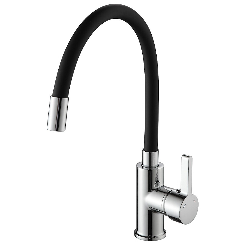 Смеситель для кухни однорычажный с силиконовым изливом черный, хром Ammore A5506-1