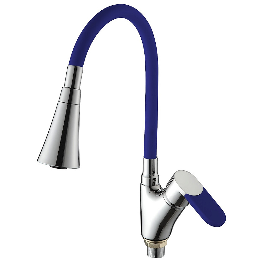 Смеситель для кухни однорычажный с силиконовым изливом синий, хром Ammore A5007-6T - изображение 1