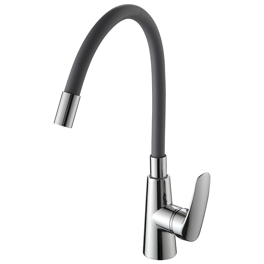 Смеситель для кухни однорычажный с силиконовым изливом серый, хром Ammore A5505-2