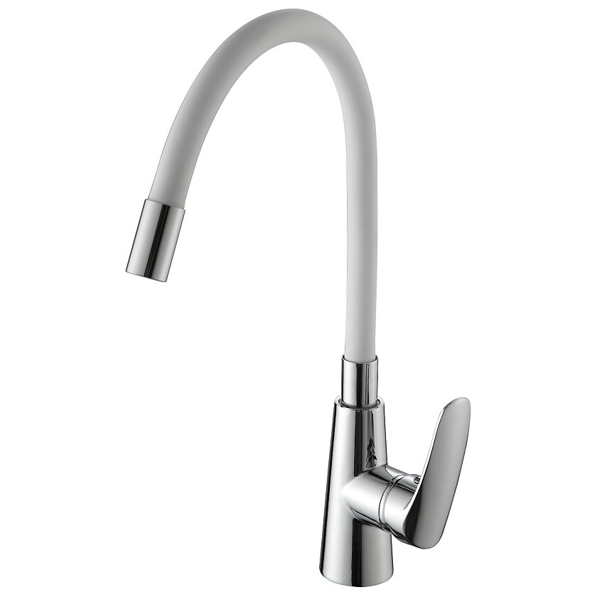 Смеситель для кухни однорычажный с силиконовым изливом белый, хром Ammore A5505-3