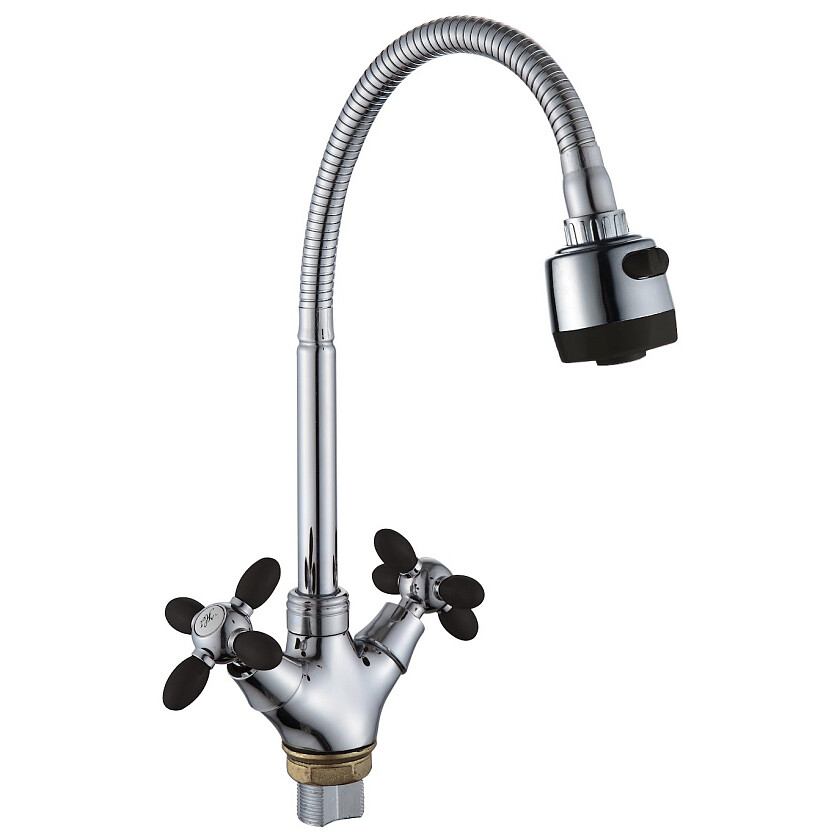 Смеситель для кухни двухвентильный с гибким изливом черный, хром Ammore A5383-1T