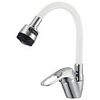 Смеситель для кухни с гибким силиконовым изливом, лейка 2х функциональная с гайкой— сантехнический прибор для установки на кухонную мойку. Регулирует и смешивает потоки воды для получения необходимой температуры и напора. Имеет гибкий излив, позволяющий гораздо удобнее наполнять ёмкости, мыть посуду и ухаживать за мойкой.