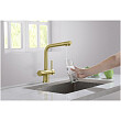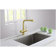 Цвет "матовое золото" никогда не выйдет из моды, во все времена драгоценный металл был признаком богатства. Смеситель Timo Saona 2396 с системой подключения фильтрованной воды относится к премиальному сегменту, предназначен для монтажа на кухонную мойку или столешницу.