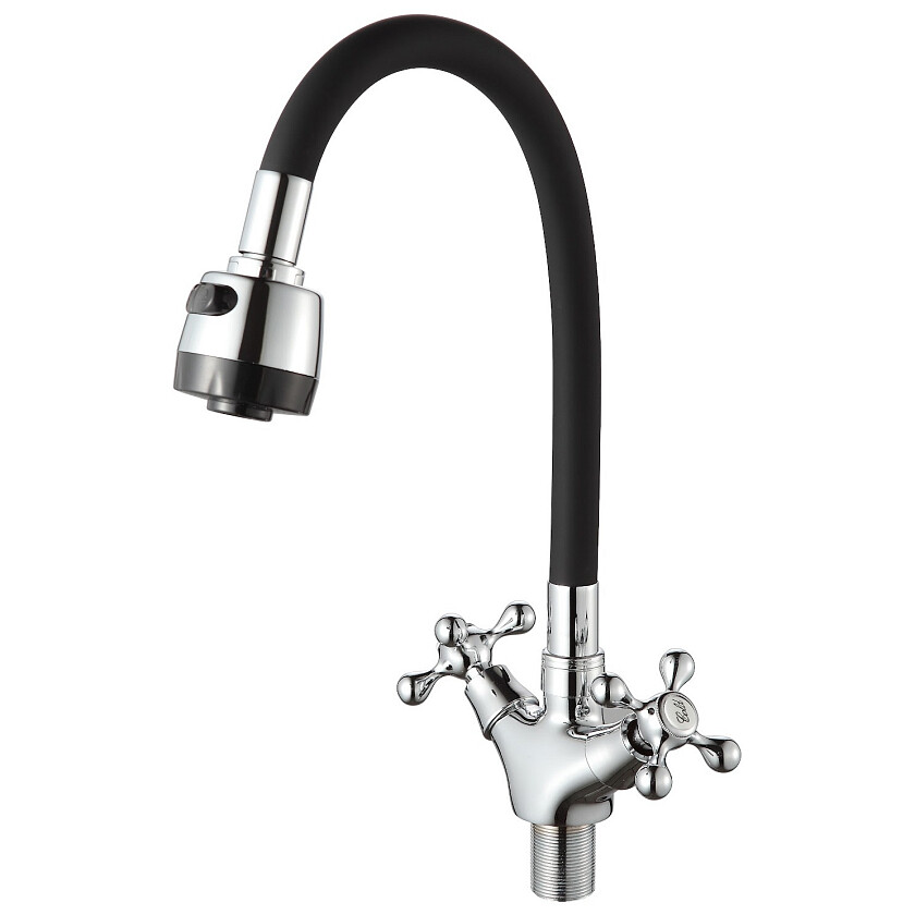 Смеситель для кухни с силиконовым изливом— сантехнический прибор для установки на кухонную мойку. Регулирует и смешивает потоки воды для получения необходимой температуры и напора. Имеет гибкий излив, позволяющий гораздо удобнее наполнять ёмкости, мыть посуду и ухаживать за мойкой.